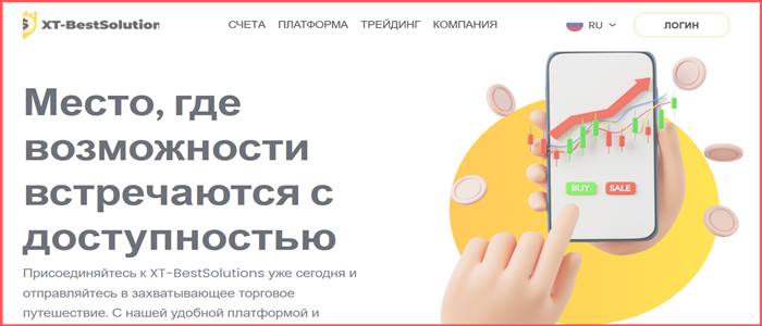 Компания XT-BestSolutions лохотрон, развод на деньги. Вкладываться деньги в проект не имеет ни малейшего смысла, вас просто обмануть опытные мошенники. Это обычная ловушка! О компании xt-bestsolutions.com отзывы не могут быть положительного характера. Это очередная псевдоброкерская помойка, которая не имеет никакого отношения к финансовым рынкам.