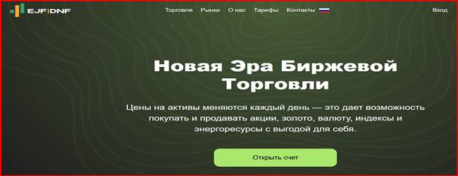 Компания EJF-dnf лохотрон, развод на деньги. Вкладываться деньги в проект не имеет ни малейшего смысла, вас просто обмануть опытные мошенники. Это обычная ловушка! О компании ejfdnf.com отзывы не могут быть положительного характера. Это очередная псевдоброкерская помойка, которая не имеет никакого отношения к финансовым рынкам.